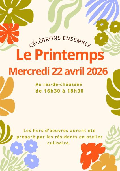 La Résidence Les Jardins du Mont Blanc organise le mercredi 22 avril 2026 un cocktail chaleureux et convivial pour célébrer le Printemps !