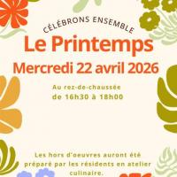 Publiée le 23/03/2026La Résidence Les Jardins du Mont Blanc organise le mercredi 22 avril 2026 un cocktail chaleureux et convivial pour célébrer le Printemps ! Les résidents prépareront les hors d'oeuvres durant un atelier culinaire le matin même. Nous invitons l'entourage des résidents à venir célébrer [...] Lire la suite